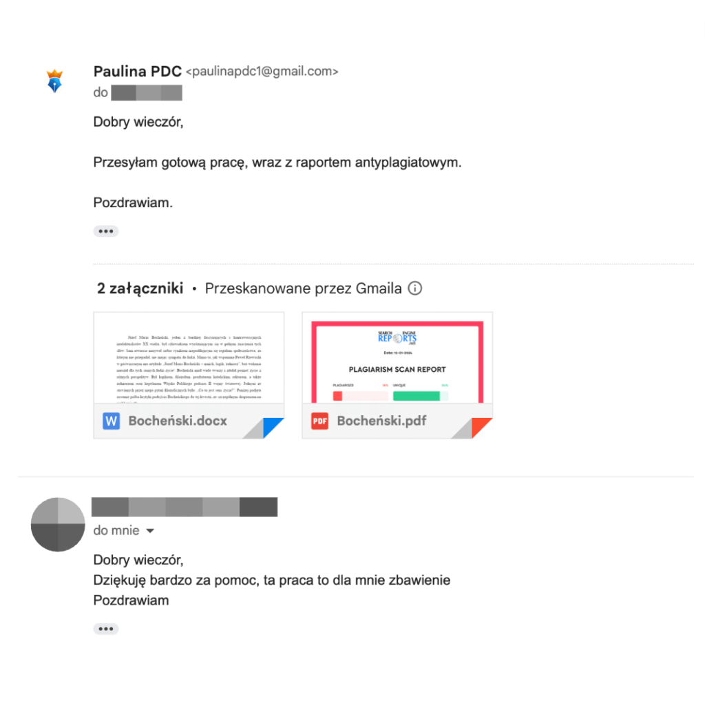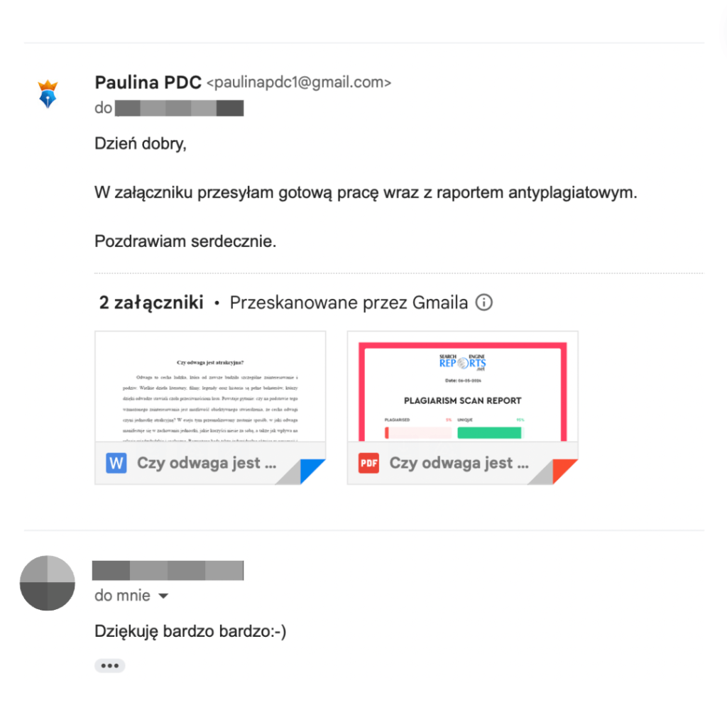 Na życzenie dołączamy indywidualny raport antyplagiatowy, abyś miał pełną gwarancję oryginalności.